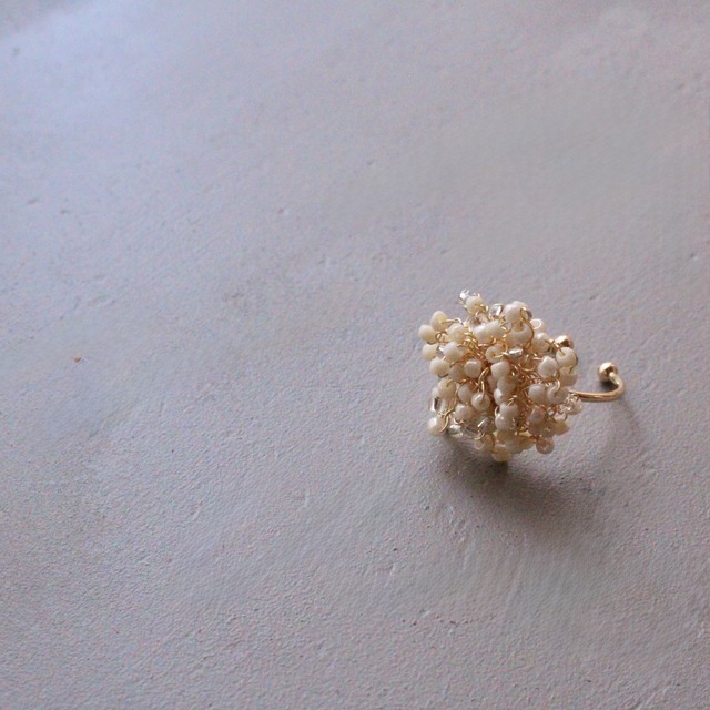 ブーケを逆さにしたようなデザインの耳飾りです。 ビーズの花びらが耳の曲線に優しく沿うようなデザインです。 こちらは限定色グレーとなります。明るめのグレーです。 着画はレッド。サイズ感の参考にしてください。 一本のワイヤーとビーズをかぎ針で編みくるみ作っております。 手編みなので大きさやバランスなどは一つずつ微妙に異なります。 本物のお花のように一つ一つの違いをお楽しみ頂けたら幸いです。 イヤリング金具:メッキ ネジバネ式 ピアス金具:チタンポスト サイズ 縦 約1.5cm 横 約2.5cm ○ワイヤーアクセサリーの取り扱いについて ワイヤー作品は端の処理を丁寧にしております。 編むことで強度が増しておりますが、強い力を加えると素材の特性上変形することがございます。その場合は優しく整えてください。 また、湿気の多いところでの保管はお控えください。 ロットにより同じゴールドでも色味が異なる場合がございます。複数ご購入の場合、必ずしも同じロットとは限りませんので予めご了承くださいませ。