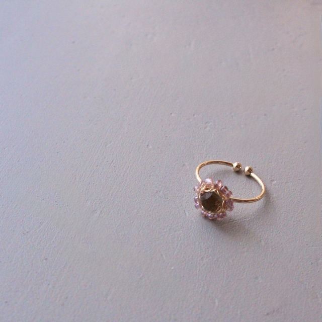 小さい頃に憧れた指輪をイメージし、その時々のインスピレーションで形にした twinkle ring。 イベントでも人気の作品です。 こちらはスモーキークォーツをゴールドワイヤーで編み、周りにチェコビーズをあしらったデザイン。 リングカラー:ゴールド サージカルステンレス製 フリーサイズ(10号前後) モチーフ 直径約1cm リングを広げる際は少しずつ、 狭める際は石を12時の位置に置き、2時・8時、10時・4時の方向で調整するとスムーズです。 ○ワイヤーアクセサリーの取り扱いについて ワイヤー作品は端の処理を丁寧に施しておりますので、強度が増しております。ただし、強い力を加えると素材の特性上、変形することがあります。その場合は優しく整えてあげてください。また、湿気の多いところでの保管はお控えいただくようお願いいたします。 水仕事や入浴の際は外してご利用ください。 リペアやお取り扱いについての詳細はこちら▼ https://www.toc-toc.me/p/00003