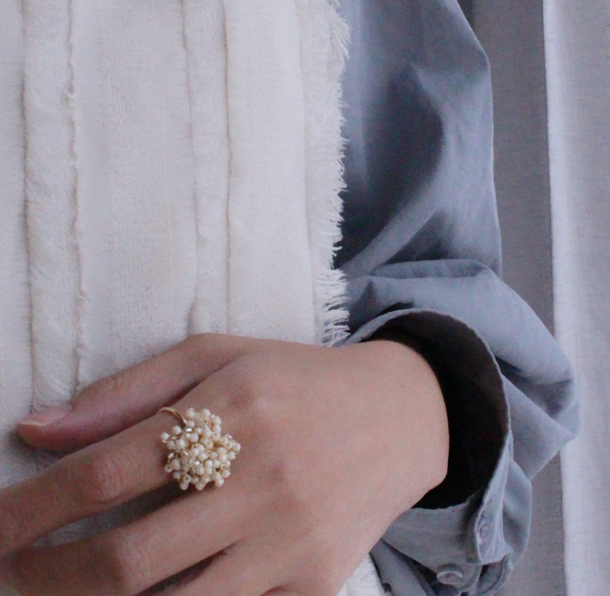 ビーズを丁寧に編み込んだflora ring